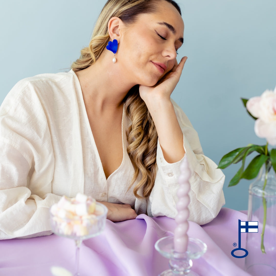 "Korvakorut ovat upeat, keveät ja kaunista kotimaista designia. Olen tilannut jo useamman kerran korvakoruja ja jopa samanlaisia eri väreissä. Tykkään mallistojen vaihtoehtojen monipuolisuudesta. Kestosuosikkini, ehdottomasti 💗"